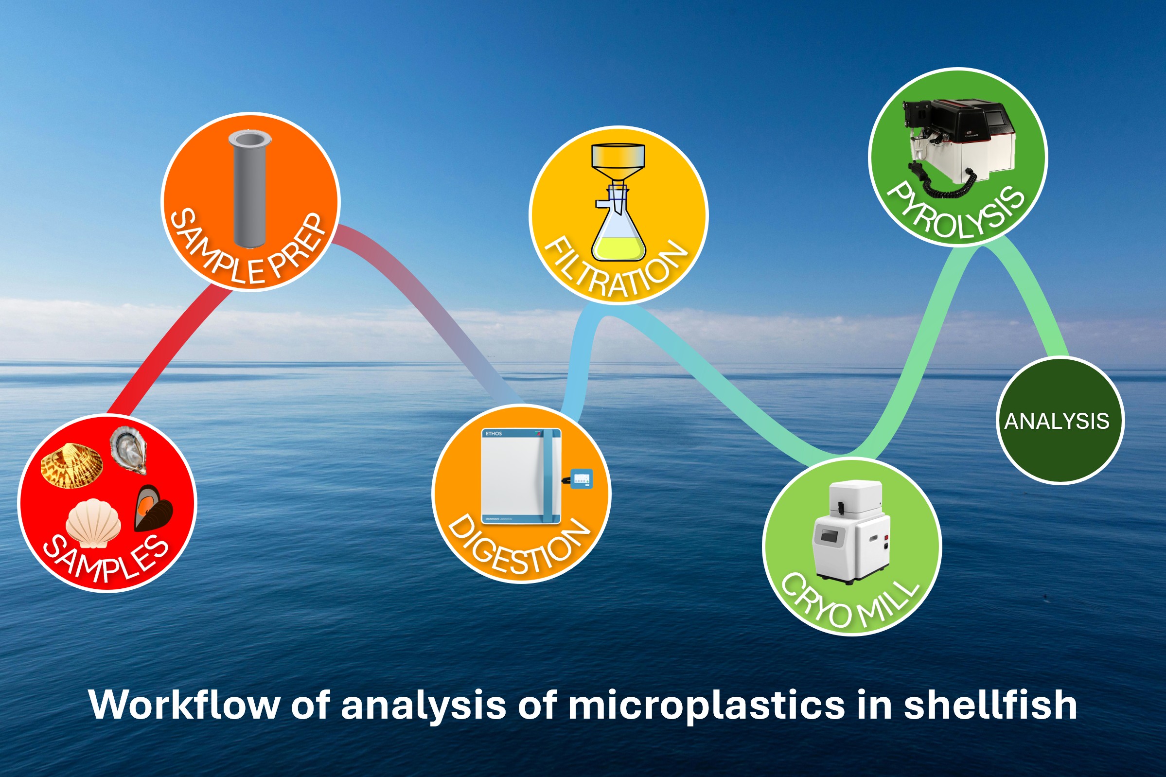 Four types of shellfish were analysed along with six microplastic standards using the new improved method. A linear calibration curve (R2>0.97) was produced using polymer masses between 4.4µg and 16.27µg with an RSD around or under 4% for just 4 runs. Additionally the spiked recovery of polystyrene was between 82 to 85%.