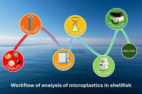 Quantification of the microplastics found that the shellfish contained polyethylene and polypropylene exceeding 80% of the total microplastic amount with ranges from 1µg/g to 15µg/g which is particularly important as it has been reported that polyethylene alone usually exceeds 80% of the total microplastic amount as described in the application note.